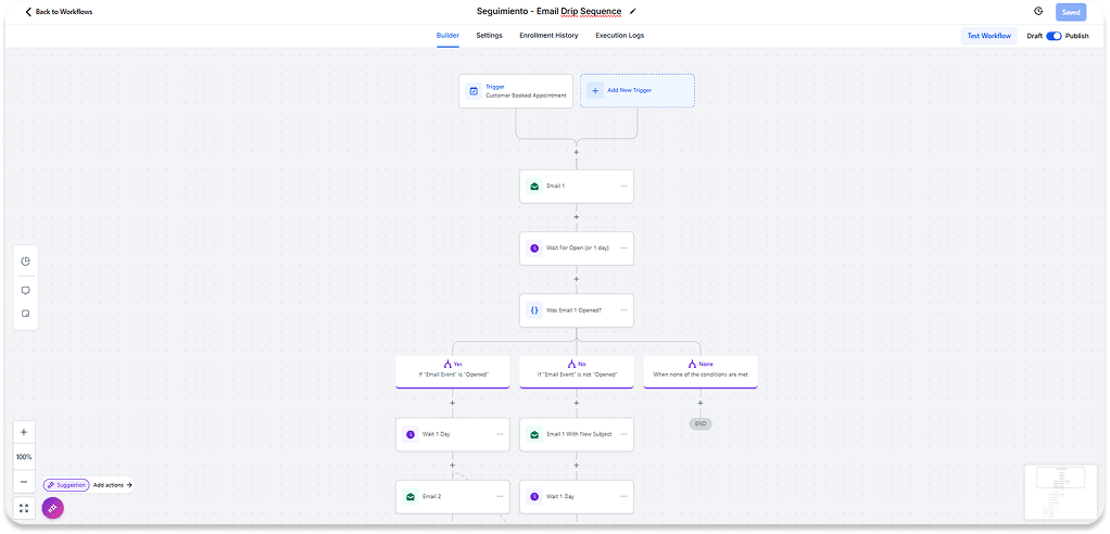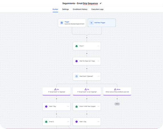 Genera más tráfico y ventas configurando automatizaciones que desencadenen correos electrónicos basados en el comportamiento del cliente con nuestro creador de recorridos del cliente, lo que lo hace aún más efectivo para empresas.